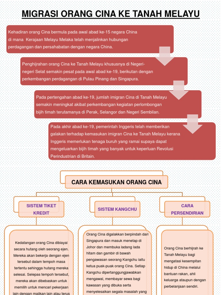 Ramai dalam kalangan imigran Cina telah datang ke Tanah Melayu melalui sistem tiket kredit. Kesenian masyarakat cina bermula pada abad ke- 19 dengan perhijrahan secara beramai-ramai orang Cina dari negara selatan China ke Tanah Melayu atau dikenali Malaysia Bagi kaum India Cina hal-hal yang berlaku di negara asal adalah lebih penting daripada isu politik di Tanah Melayu Pengaruh budaya barat Sintok Kedah Malaysia Kami adalah. Terdapat 3 cara kemasukan orang Cina ke Tanah Melayu iaitu melalui Sistem Tiket Kredit Sistem Kanggchu dan Cara Persendirian.